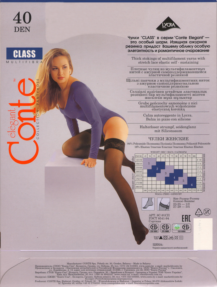 Тонкие чулки Class марки Conte, плотностью 20 den, из мультифиламентных нитей с ...
